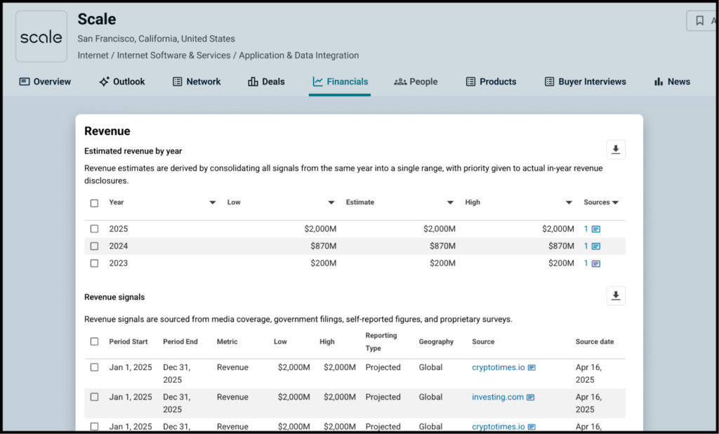 The world’s largest, high-quality private company revenue dataset, with full transparency into where it came from and how it was calculated.