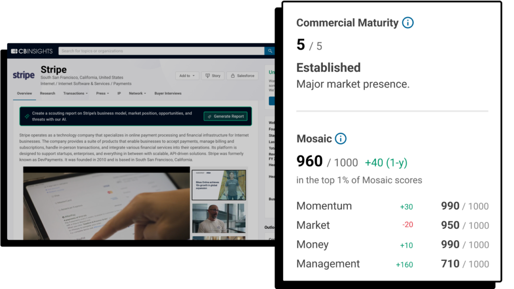 For example, a company with substantial funding and a strong founding team might have a very high Mosaic score (600+ – Top 10 percentile). However, its Commercial Maturity might be 3 (indicating that it’s in the deployment stage and starting to gain customers) because the company has just begun to sell its product.